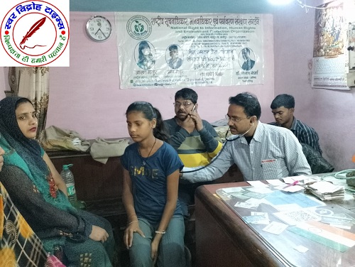 चिकित्सा शिविर में स्वास्थ परीक्षण हेतु आई महिलाओं / बालिकाओ को स्वास्थ परिक्षण कर नि:शुल्क दवा का वितरण किया गया ।