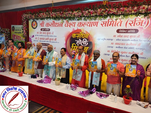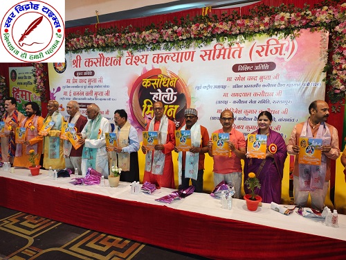 18 मार्च 2025 : आज मानसरोवर रोड रामलीला मैदान पर होली मिलन कार्यक्रम का कसौधन वैश्य रजिस्टर्ड का संपन्न हुआ जहां बड़ी संख्या में शहर के विभिन्न क्षेत्र से आए हुए महिला पुरुष औ र बच्चों की सहभागिता सबसे ज्यादा दिखाई दिया आज महर्षि कश्यप के वंशज संपूर्ण विश्व में अपने कृतित्व की कीर्ति चारों दिशाओं में बिखेर रही है प्रतिभा की कोई कमी नहीं हर क्षेत्र में समाज का योगदान बहुत बड़ा है आज आवश्यकता है की महर्षि कश्यप की समस्त वंशज एक जुट होकर अपने महान अतीत को चरितार्थ करें और अपनी उपलब्धियां से अपने महान राष्ट्र को वैभव संपन्न और गौरवशाली बनाएं निश्चित तौर पर मातृ शक्ति के अंदर एक महत्वपूर्ण भूमिका होती है समाज के अंदर महिलाओं की भागीदारी भी अत्यंत जरूरी है महिलाएं भी समाज की एक अंग है उक्त उदगार आज श्री कसौधन वैश्य कल्याण समिति पंचायती मंदिर शेषपुर के द्वारा आयोजित बैनर तले इस कार्यक्रम में बतौर मुख्य पूर्व जिला न्यायाधीश एवं अध्यक्ष उपभोक्ता फोरम श्री प्रेमचंद गुप्त ने आज समिति के द्वारा विमोचन के अवसर पर बतौर मुख्य अतिथि के रूप में उक्त उद्गार व्यक्त किया ।अखिल भारतवर्षीय कसौधन महासभा के राष्ट्रीय अध्यक्ष इंजीनियर बजरंगबली गुप्ता ने इस अवसर पर कहा कि कलयुग में भी संगठन में ही शक्ति है काफी नहीं है बल्कि उसके प्रति अपने कर्तव्यों का निष्ठा पूर्वक निर्वहन करना महत्वपूर्ण है हमें हमेशा एक दूसरे का साथ देना चाहिए । इस अवसर पर वैश्य कल्याण स्मारिका के प्रधान संपादक श्री रमेश चंद्र गुप्ता ने कहा आज समय की पुकार है कि कसौधन समाज के लोग एकजुट हो और आगे बढ़कर अपनी जाति की कुरीतियों को दूर करें आगे कहा हमारे समाज का वह हर एक अंग जो कमजोर है चाहे शिक्षा की दृष्टि से धन की दृष्टि से या किसी अन्य कमजोरी के कारण हमें उसे कमजोर नहीं रहने देना है ।कार्यक्रम का प्रारंभ में मुख्य अतिथि जिला न्यायाधीश श्री प्रेमचंद गुप्त एवं अखिल भारतवर्षीय कसौधन वैश्य महासभा के राष्ट्रीय अध्यक्ष इंजीनियर बजरंगबली गुप्त एवं स्मारिका के संपादक रमेश चंद्रगुप्त श्री कसौधन वैश्य कल्याण समिति के अध्यक्ष श्री अशोक कुमार गुप्ता महामंत्री गौरव गुप्ता एवं कोषा अध्यक्ष राम प्रकाश गुप्ता ने दीप प्रज्वलन कर महर्षि कश्यप के तेल चित्र पर माल्यार्पण कर पुष्प अर्पित कर कार्यक्रम की विधवत शुरुआत की ।तत्पश्चात मंचासीन सभी अतिथियों को बैच लगाकर एवं माल्यार्पण पट्टिका बना करके उनका भव्य स्वागत किया गया मुख्य अतिथि एवं अतिथियों का इस अवसर पर स्मृति चिन्ह देकर भी उन्हें सम्मानित किया गया कार्यक्रम का संचालन महामंत्री श्री गौरव गुप्ता ने किया अंत में समिति के अध्यक्ष अशोक कुमार गुप्ता ने सभी आगंतुकों के प्रति आ