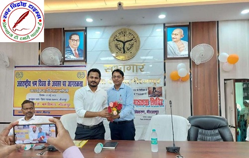 01 मई 2025 : अंतर्राष्ट्रीय श्रम दिवस के अवसर पर श्रम विभाग मीरजापुर एवं जिला विधिक सेवा प्राधिकरण मीरजापुर द्वारा जिला पंचायत सभागार में जागरूकता कार्यक्रम / विचार गोष्ठी का आयोजन किया गया । कार्यक्रम की अध्यक्षता मुख्य विकास अधिकारी विशाल कुमार ने किया । सहायक श्रमायुक्त द्वारा कार्यक्रम के उद्देश्यों पर विस्तार से चर्चा करते हुये उ0प्र0 भवन एवं अन्य सन्निर्माण कर्मकार कल्याण द्वारा संचालित योजनाओं पर विस्तार से चर्चा करते हुये उपस्थित श्रमिकों से हितलाभ हेतु आवेदन किये जाने हेतु जोर दिया गया । बोर्ड द्वारा संचालित किये जा रहे मीरजापुर मण्डल में अटल आवासीय विद्यालय पर जानकारी देते हुये बताया कि नवोदय विद्यालय जैसा ही निर्माण श्रमिकों के पुत्र / पुत्रियों हेतु गुरमुरा सोनभद्र में अटल आवासीय विद्यालय संचालित है, जहां निर्माण श्रमिकों के बच्चें प्रवेश परीक्षा पास कर कक्षा 6 से 12 तक निःशुल्क शिक्षा प्राप्त कर सकते हैं । भारत सरकार द्वारा संचालित प्रधान मंत्री श्रम योगी मानधन योजना एवं ई-श्रम पर विस्तार चर्चा करके जानकारी दी गयी । गोष्ठी को संबोधित करते हुये अपर जिला एवं सत्र न्यायाधीश द्वारा उपस्थित निर्माण श्रमिकों को 01 मई अंतर्राष्ट्रीय मजदूर दिवस के महत्व पर विस्तार से चर्चा की गई । चर्चा में उन्होंने बताया कि 150 वर्ष पहले श्रमिकों से 18 घण्टे काम कराया जाता था, परन्तु आंदोलन के उपरान्त वर्तमान में 08 घण्टे काम लिया जाता है । उपस्थित मजदूरों को सरकार द्वारा संचालित की जा रही योजनाओं में लाभ दिये जाने पर बल दिया गया । मुख्य विकास अधिकारी, द्वारा चर्चा करते हुये बताया कि वर्तमान समय में गूगल की क्रान्ति है । कोई भी योजना की जानकारी गूगल पर देखा जा सकता है । सरकार द्वारा दी जा रही व्यवस्था के अनुसार आप किसी भी योजना का आवेदन कामन सर्विस सेन्टर के माध्यम से करते हुये लाभ प्राप्त किया जा सकता है । मुख्य विकास अधिकारी ने उपस्थित श्रमिकों को विभिन्न विभागों द्वारा संचालित योजनाओं यथा-एन0आर0एल0एम0, मुख्यमंत्री युवा योजना, ई-श्रम पोर्टल, प्रधान मंत्री श्रम योगी मानधन योजना पर विस्तार से चर्चा की । चर्चा के दौरान 18-40 वर्ष के युवाओं हेतु सी0एम0युवा योजना के अंतर्गत पंजीयन कराकर स्वरोजगार हेतु पंजीयन कराने पर जोर दिया गया । अंत में मुख्य विकास अधिकारी द्वारा श्रम विभाग द्वारा संचालित योजनाओं में हितलाभ प्राप्त कर चुके लाभार्थियों को स्वीकृति पत्र का वितरण किया गया । उपस्थित श्रमिकों के धन्यवाद ज्ञापन के बाद विचार गोष्ठी का समापन किया गया । कार्यक्रम में मुख्य रूप से सुविज्ञ सिंह, सहायक श्रमायुक्त, श्री आलोक रंजन, श्रम प्रवर्तन अधिकारी, मीरजापुर, श्री ज्ञानेन्द्र सिंह, श्र