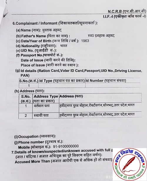 जिला ब्यूरो चीफ सोनभद्र नारायन दास की रिपोर्ट