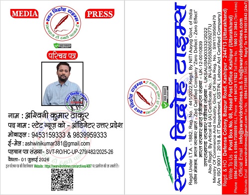 ☎️ Phone : 0594-7350540 & 0594-7355059 📞 WLL Phone : +91 94129 17922 💼 Official Whatsapp : +91 96394 97030 📧 Official Email : info@swarvidrohtimes.in 📩 Alternate Email : swarvidrohtimes@gmail.com