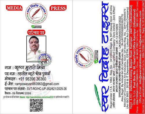 ☎️ Phone : 0594-7350540 & 0594-7355059 📞 WLL Phone : +91 94129 17922 💼 Official Whatsapp : +91 96394 97030 📧 Official Email : info@swarvidrohtimes.in 📩 Alternate Email : swarvidrohtimes@gmail.com