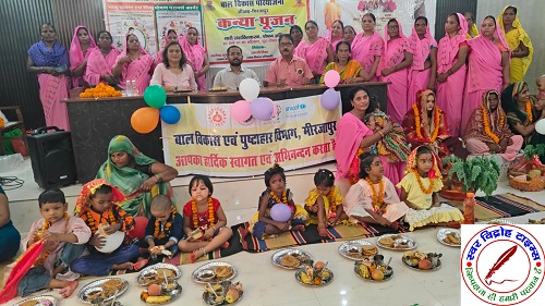 01 अक्टूबर 2025 : क्षेत्र के सीखड़ विकास खंड पर बाल विकास पुष्टाहार विभाग द्वारा नारी सशक्तिकरण पोषण अभियान के अंतर्गत समाज में बालिकाओं के जन्म के प्रति सोच में सकारात्मक बदलाव के उद्देश्य से अष्टमी एवं नवमी के अवसर पर नव कन्या पूजन एवं गोद भराई व छ माह के बच्चों को अन्नप्राशन कराया गया । इसके पश्चात बालिकाओं के लिए मुख्यमंत्री कन्या सुमंगला योजना एवं प्रधानमंत्री मातृ वंदन योजना का फॉर्म भरवारा गया । खंड विकास अधिकारी सीखड़ रामजी मिश्रा ने विशेष अतिथि के रूप में सहभागिता की और महिलाओं को सम्मानित किया । डीसी मनरेगा सुशांत सिंह ने अपने संबोधन में कहा कि महिलाओं और बच्चों के स्वास्थ्य सुधार एवं पोषण स्तर बढ़ाने में सामूहिक प्रयास जरूरी है उन्होंने आंगनबाड़ी कार्यकत्री से अपेक्षा की कि वे गांव – गांव तक योजनाओं की जानकारी पहुंचाएं । बाल विकास परियोजना अधिकारी नीलू मिश्रा ने कहा कि सरकार द्वारा विभिन्न योजनाओं के माध्यम से महिलाओं और बच्चों के स्वास्थ्य, पोषण तथा सशक्तिकरण की दिशा में विशेष कार्य किए जा रहे हैं । कार्यक्रम की शुरुआत पारंपरिक कन्या पूजन से हुई, जिसमें बालिकाओं का स्वागत तिलक, आरती और चरण पूजन कर किया गया । गोद भराई मीता देवी, रीना चौरसिया, अन्नप्राशन कार्तिक सरिवान एवं कन्या पूजन आरती, अभया, तनु, काव्य, सेजल, राधा, रीना, शिवी का किया गया । इसके साथ ही गोद भराई की रस्म कराया गया, जिसमें गर्भवती महिलाओं को उपहार और फल प्रदान किए गए । कार्यकत्रियों द्वारा भैरव जी की भी आरती उतारी गई जिसका मुख्य मकसद था जेंडर इक्वलिटी को प्रोत्साहित करना । धन्यवाद ज्ञापन बाल विकास परियोजना अधिकारी नीलू मिश्रा द्वारा दिया गया ।