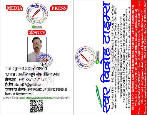 ☎️ Phone : 0594-7350540 & 0594-7355059 📞 WLL Phone : +91 94129 17922 💼 Official Whatsapp : +91 96394 97030 📧 Official Email : info@swarvidrohtimes.in 📩 Alternate Email : swarvidrohtimes@gmail.com