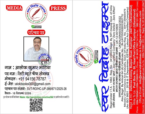 ☎️ Phone : 0594-7350540 & 0594-7355059 📞 WLL Phone : +91 94129 17922 💼 Official Whatsapp : +91 96394 97030 📧 Official Email : info@swarvidrohtimes.in 📩 Alternate Email : swarvidrohtimes@gmail.com