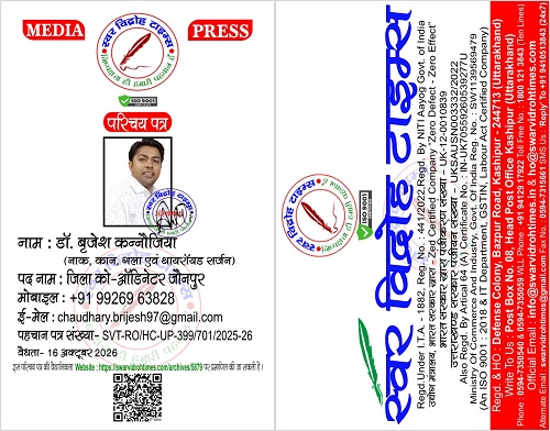 ☎️ Phone : 0594-7350540 & 0594-7355059 📞 WLL Phone : +91 94129 17922 💼 Official Whatsapp : +91 96394 97030 📧 Official Email : info@swarvidrohtimes.in 📩 Alternate Email : swarvidrohtimes@gmail.com