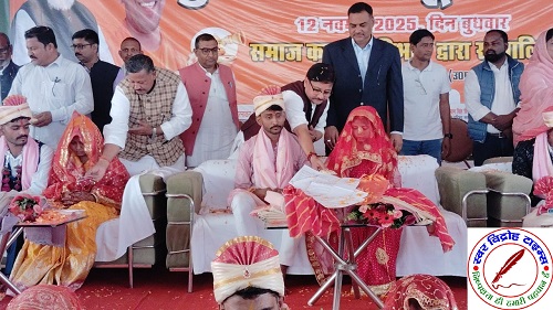 12 नवम्बर 2025 : मुख्यमंत्री सामूहिक विवाह का आयोजन बुधवार को परेड ग्राउण्ड चुनार में आयोजित किया गया । जिसमें विकास खण्ड-नरायनपुर के 70, जमालपुर के 78, विकास खंड सीखड़ के 19 एवं नगरपालिका चुनार के 5, अहरौरा के 6, नगरपंचायत कछवा के 7 नव युगल जोड़ी ने अग्नि को साक्षी मानकर एक साथ रहने के लिए सात फेरे लिए । कार्यक्रम में विधायक चुनार अनुराग सिंह, चेयरमैन – जिला सहकारी बैंक जगदीश सिंह पटेल, जिलाधिकारी पवन कुमार गंगवार, परियोजना निदेशक डीआरडीए धर्मजीत सिंह, उपस्थित रहकर नव दम्पतियों को अपना आशीर्वाद प्रदान कर उनके सुखद एवं मंगलमय जीवन की कामना की । विधायक चुनार एवं जिलाधिकारी ने आशीष वचन देकर सामूहिक विवाह कार्यक्रम में सम्मिलित होने वाले सभी नव-वैवाहिक जोड़ों को उनके सुखद एवं सुखमय जीवन की कामना की, साथ ही वर-वूध को उपहार हेतु दी जाने वाली सामग्री एवं प्रमाण-पत्र वितरित किया । उन्होनें अपने सम्बोधन में कहा कि उत्तर प्रदेश सरकार आर्थिक रूप से गरीब परिवारों के उत्थान एवं विकास हेतु प्रतिबद्ध है एवं सरकार द्वारा आर्थिक रूप से गरीब परिवारों, बेसहरा व्यक्तियों के बहुत सी कल्याणकारी योजनायें चलायी जा रही है, जिसमें मुख्यमंत्री सामूहिक विवाह योजना मील का पत्थर साबित हो रही है । मुख्यमंत्री सामूहिक विवाह योजनान्तर्गत ऐसे माता-पिता जो आर्थिक रूप से अपनी पुत्री की शादी करने में सक्षम नहीं है, वह सरकार की इस महत्वाकांक्षी योजना का लाभ प्राप्त कर अपनी पुत्रियों की शादी करा पा रहे है । मुख्यमंत्री सामूहिक विवाह योजनान्तर्गत प्रति जोड़ो की शादी में कुल धनराशि रू० 100000 दी जाती है । जिसमें कन्या के दाम्पत्य जीवन में खुशहाली एवं गृहस्थी की स्थापना हेतु राशि रू0 60000/- कन्या के बैंक खाते में स्थानांतरण की जाती है । साथ ही विवाह संस्कार के लिये रू0 25000/- की धनराशि का आवश्यक सामग्री कपड़े, बिछिया, चांदी की पायल तथा अन्य गृहस्थी सामान दिया गया । इसके अतिरिक्त कार्यक्रम आयोजन हेतु भोजन, पण्डाल, फर्नीचर, पेयजल, विद्युत / प्रकाश व्यवस्था एवं अन्य आवश्यक व्यवस्थाओं हेतु रू0 15000/- प्रति शादी की दर से कार्यक्रम आयोजक को दिया जाता है ।स्टेट को-ऑर्डिनेटर उत्तर प्रदेश गोपीनाथ मिश्रा की रिपोर्ट