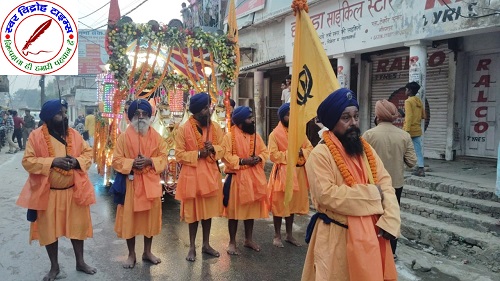 18 नवम्बर 2025 : नगर के गंगेश्वर नाथ स्थित गुरुद्वारा श्री गुरु तेग बहादुर साहिब चुनार में मंगलवार को सिक्ख धर्म के प्रथम गुरु और संस्थापक श्री गुरु नानक देव जी महाराज का 556 वां प्रकाश पर्व श्रद्धा, भक्ति और आध्यात्मिक वातावरण में मनाया गया। आकर्षक रूप से सजे गुरु दरबार में प्रातःकाल से ही गुरुबाणी और कीर्तन की मधुर ध्वनियां गूंजती रहीं । अखंड पाठ समाप्ति के पश्चात बड़े दीवान में गुरु ग्रंथ साहिब की पावन हजूरी में मुख्य कार्यक्रम संपन्न हुआ । वाराणसी से पधारे रागी जत्था भाई रतन सिंह ने सतगुरु नानक परगटिया मिटी धुंध जग चाणन होआ… और नानक जग माहि पाठ पठाया, कल तारन गुरु नानक आया.. सहित अन्य शबदों की सुरीली प्रस्तुति देकर संगत को भाव-विभोर कर दिया । इस अवसर पर सैकड़ों आस्थावानों ने गुरु का लंगर छका । इसके पश्चात सायंकाल टेकौर तिराहा से गुरु नानक देव जी का शोभायात्रा निकाली गई । जो भरपूर तिराहा, गंगेश्वर नाथ, चौक, सर्राफा बाजार, साहब राम गोला, सद्दपुर से होते हुए गुरुद्वारा में जाकर समापन हुआ । यात्रा के आगे आगे पंच प्यारे हाथों में नंगी तलवार लेकर चल रहे थे । शोभायात्रा में शामिल होने आए वाराणसी, चंदौली, सोनभद्र मिर्जापुर से आए जत्थों ने अपनी कला और करतब दिखाए । इस दौरान पालिका अध्यक्ष मंसूर अहमद, भाजपा मंडल अध्यक्ष मगरू साहनी, अध्यक्ष चतर पाल सिंह, उपाध्यक्ष दविंदर सिंह, महामंत्री महेंद्र सिंह, कोषाध्यक्ष दलजीत सिंह, गुरप्रीत सिंह, संगठन मंत्री सुरजीत कौर, हरजीत सिंह, मेला सिंह, हरिप्रीत सिंह, रमनदीप सिंह, सुप्रीत कौर सहित सैकड़ों आस्थावान मौजूद रहे ।